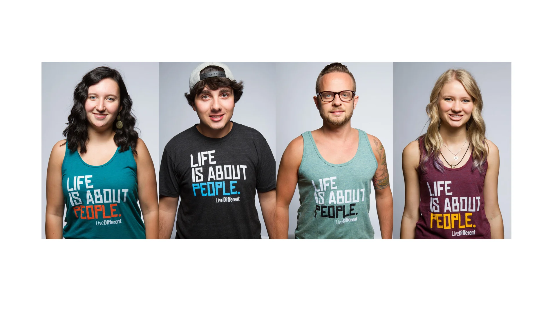 Live Different is a Canadian charity that helps build houses for families living in poverty in Mexico, Dominican Republic, Thailand, and Haiti. The 'Life is about People' shirt was created and sold to express 'life is bigger than one's self, and is about helping others.' Volunteers who traveled on 'Live Different Builds' Trips to third world countries had the opportunity to buy the shirts and wear them as they built a house, and to represent their experience helping others when they come home.